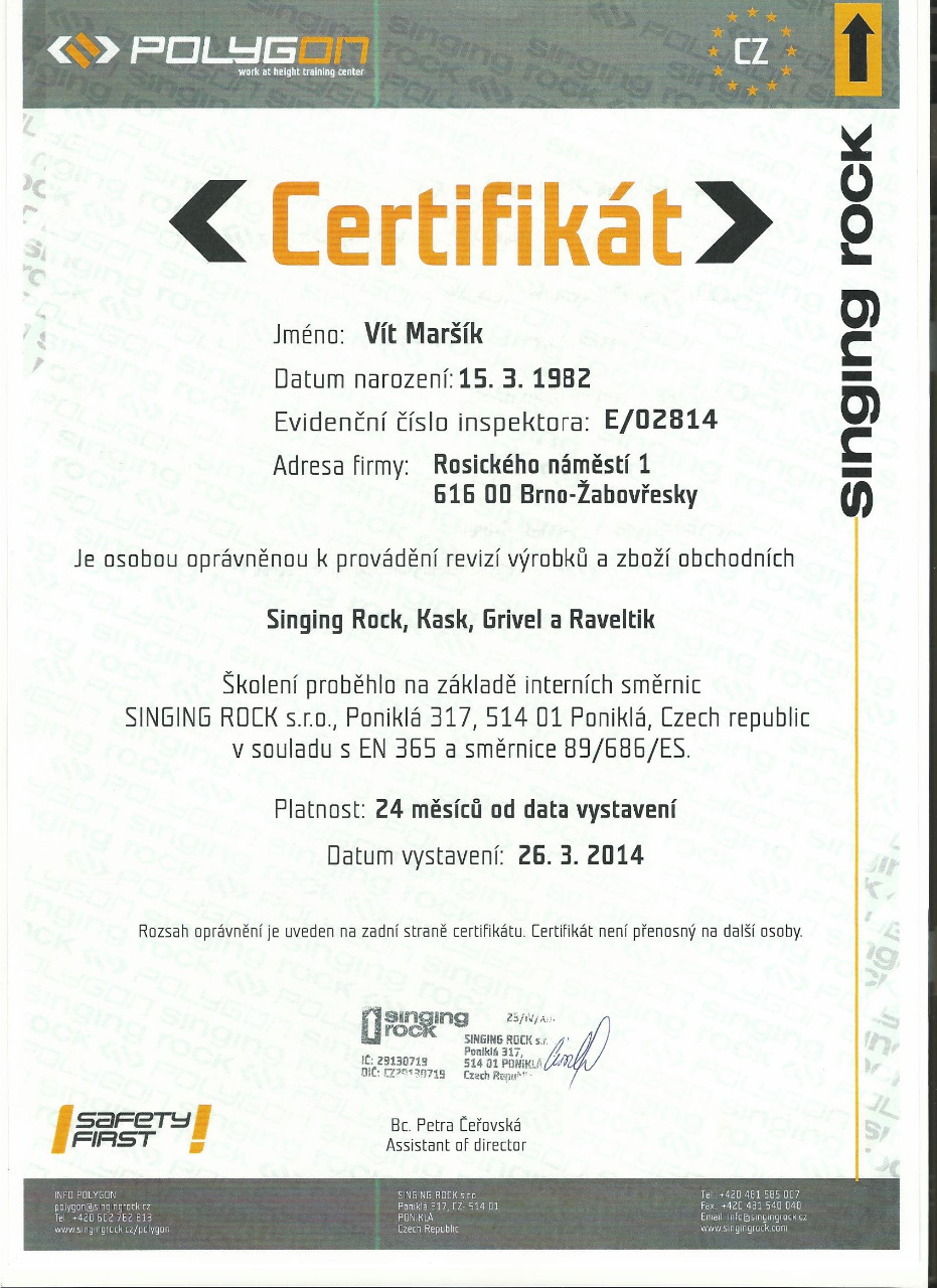 Nabízíme vám certifikované revize a kontroly vašich osobních ochraný pracovních prostředků.